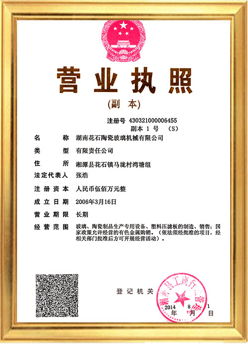 HunanHuashi CeramicGlassMachinery Co., Ltd.,founded in 1990,formerly known as XiangtanHuashiCeramic Machinery Co., Ltd., .covers an area of 35,000 square meters, owns strong technical force and all kinds of advanced processing and testing equipments, has rich experience in production management, owns more than 200 employees, including 8 senior engineers and 22 technicians, is a professional manufacturer of the ceramic machinery and glass deep processing machinery.